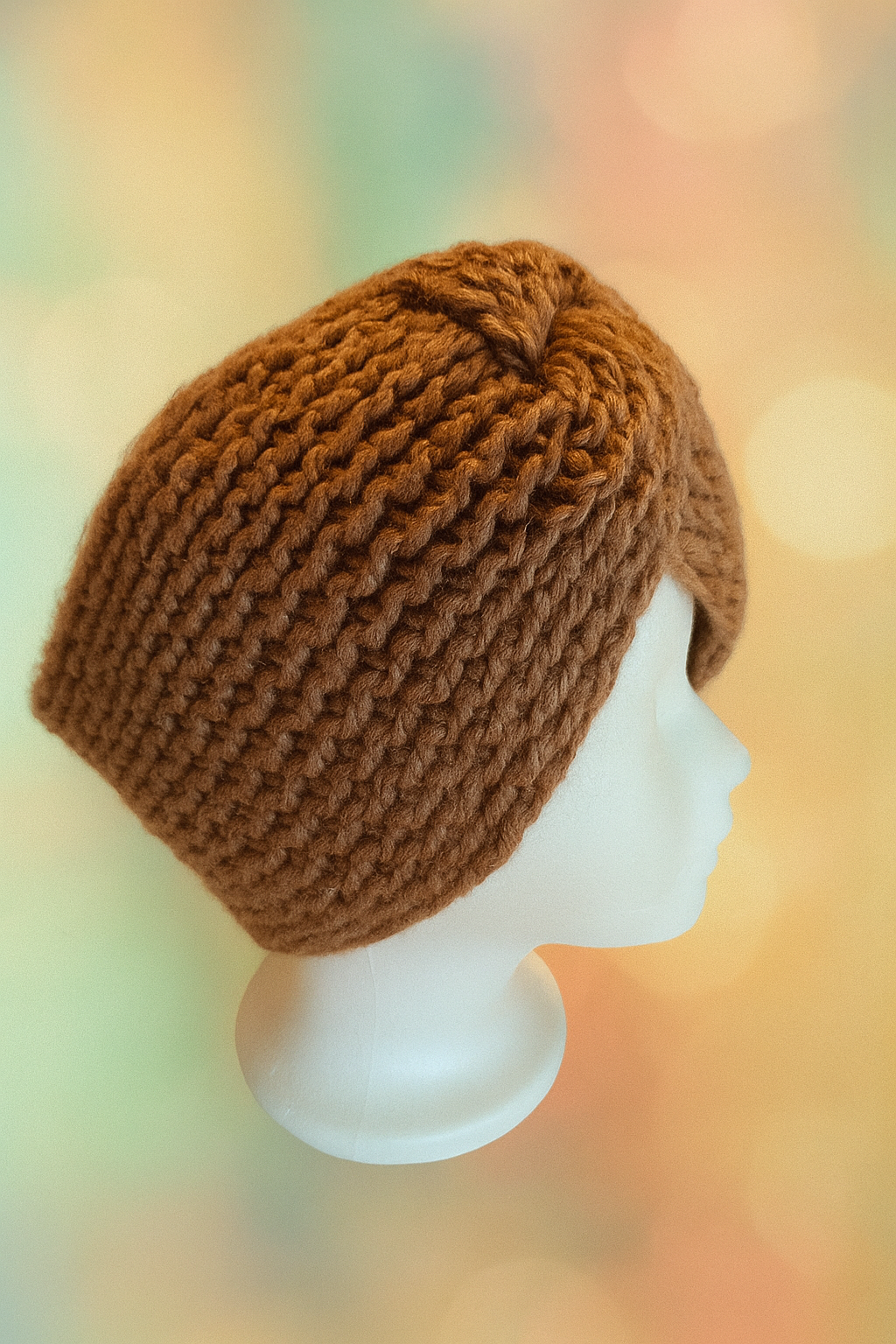 Grand bandeau hivers couvre oreilles. Idéal pour les temps froids et venteux. 26 cm de longueur et 16 cm de hauteur, confectionné avec un lainage très doux et brillant 10%mérino 70%Polyamide 20%acrylic lavage à 30° avec une lessive spéciale laine. Ne passe pas au sèche linge. Couleur Camel métallisé